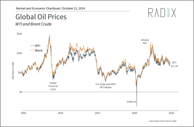 Oil prices have been a significant driver of inflation and market volatility over the past few years, and last quarter was no exception. Though oil prices have come down from their 2022 highs, they have risen again recently due to geopolitical tensions, particularly in the Middle East.